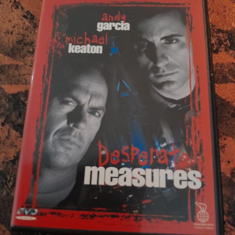 Desperate Measures dvd. Film i dvd-format med Andy Garcia og Michael Keaton. Omslag på engelsk. Egnet til afspilning på dvd-afspiller, computer med dvd-drev eller anden kompatibel enhed. Aldersmærkning 15 år.