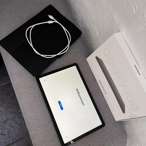 Samsung Galaxy Tab 2 - 10.1med 16 GB intern hukommelse. Den er med wi-fi modelEnheden fremstår i hvid med frontkamera og bagkamera. Skærmen er egnet til almindelig brug som internet, streaming og apps. Tabletten har fysiske knapper på siden til tænd/sluk og lydstyrke. Opladerkabel medfølger ifølge billederne. Velegnet til daglig brug, let underholdning og simple arbejdsopgaver.med cover og lade kabel