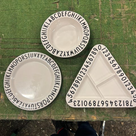 Design Letters tallerkener med tal- og bogstavkant pink og hvid