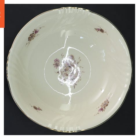 Elegant fad fra det ikoniske Raili-stel af Arabia, designet af Svea Granlund i 1950’erne. Dette fad har en længde på 25 cm og fremstår i god stand uden skår eller revner. Det fine blomster- og guldkantede mønster giver et tidløst og stilfuldt udtryk – perfekt til både hverdag og fest.