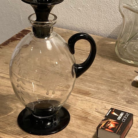 3 ANTIKKE KARAFLER , ætset med - GL. ROM // COGNAC // + 1 uden ætsning // 1 prop for lille -- SAMLET pris (3) - KUN 185 kroner afh. i Herning + evt. forsendelse ??