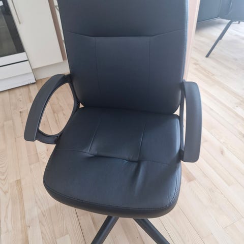 With armrests, this chair supports good posture so you can sit comfortably for hours. The chair is upholstered in black faux leather. W57 x H92-102 x D64 cm