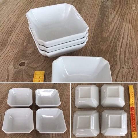 Flot tapas sæt bestående af 4 små skåle, 2 aflange skåle og bakke i bambus. 3 lidt større glasskåle (den 4. er der skår i, men køber må få den med hvis det ønskes)