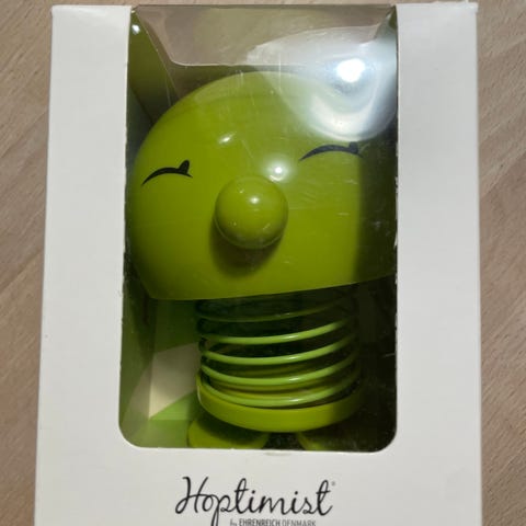 Hoptimist Classic figur i orange. Figuren har den karakteristiske fjederkrop og rund form med lukket smilende øjne. Str. Large (14 cm). Leveres i original æske.