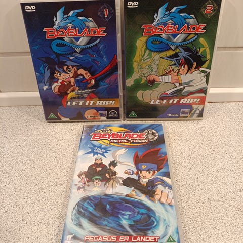 Beyblade Metal Fusion dvd sæt med tre dvd’er med anime-serien. Hver dvd indeholder 5 episoder med figurerne fra Beyblade-universet. Samlet pris