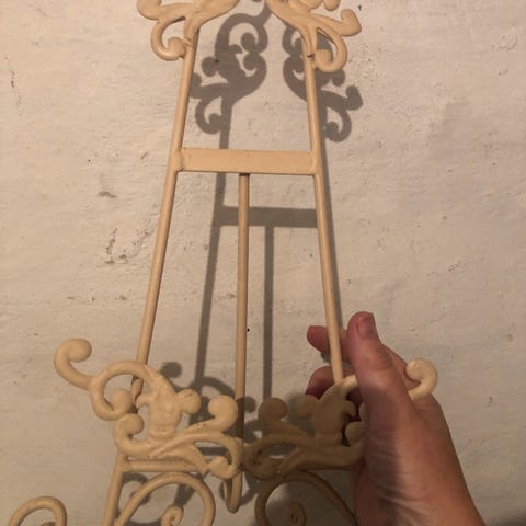 Dette er et bogstativ lavet af metal med en kromfinish. Det er designet til at holde bøger eller andre lignende genstande oprejst. For eksempel kan de holde kogebøger åbne under madlavning. Med dimensionerne 24x25 cm er det kompakt og let at placere på en bordflade eller hylde. Det har en minimalistisk stil, der passer til mange indretningsstile. Tags: bogstativ, kromstativ, bogholder, metalholder.