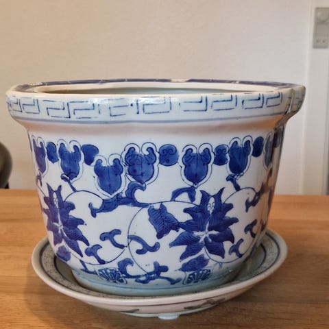 Antik Almue Håndmalet Træ Krukke (str. Ø 33 cm)