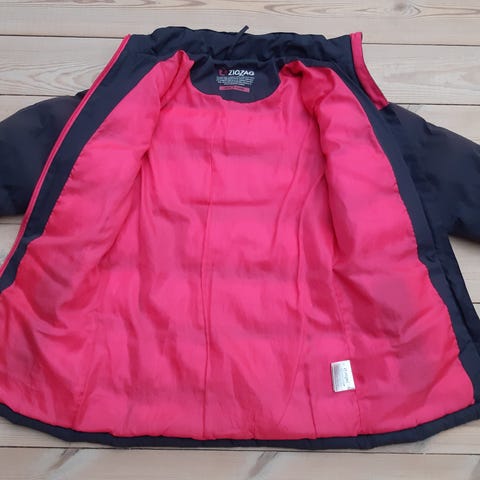 Flot og kun lidt brugt - Zigzag frakke - med 2 lommer og kraftig lynlås. Hætten er desværre blevet væk - prisen er sat derefter. Pris 75 KR.