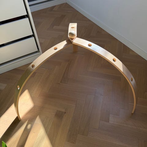 Aktivitetsbøjlen består af 3 ben, der holdes sammen med en trækugle. Bøjlen er meget let at folde ud og ind, og er derfor let at tage med på besøg. Bøjlen er udstyret med huller i forskellige højder.