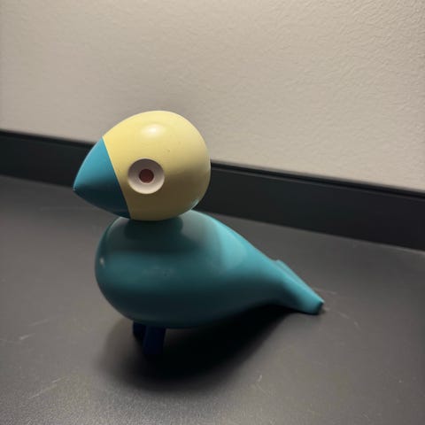 Kay Bojesen Poppy fugl træfigur i brun med orange næb. Leveres i original æske med motiv af figuren på ydersiden. Kun åbnet for at tage billeder helt ny, se billeder at der ved at tage hovedet af er lidt, sikkert sket ved at der ved produktionen af fuglen er sat krop og hoved sammen før den har været helt tør, deraf prisen