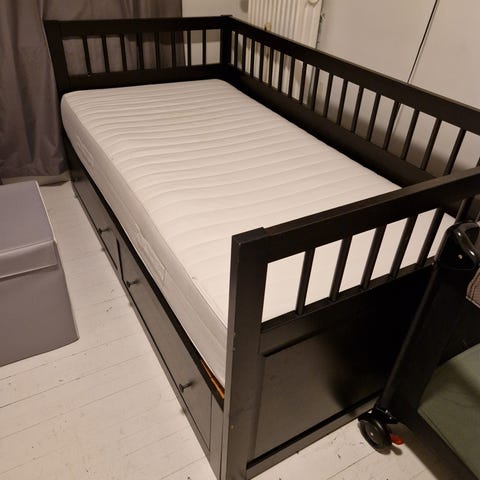 Lamelbunde med elevation til dobbeltseng bortgives. Afhentning i Ramløse. De knirker som bare pokker, men de virker upåklageligt, alle lameller er intakte, begge fjernbetjeninger fungerer OG de er gratis; hvilket er en formidabel pris.