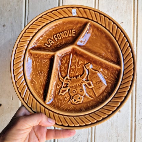 Porcelæn, Tapas tallerkener, 3 fine gamle franske tapas tallerkener fra 70'erne. De måler 24 cm.i diameter. Og der er 1 lækker grøn og 2 lækre sennepsfarvet.
