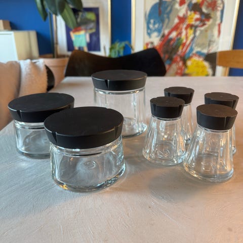 Rosendahl opbevaringsglas i klart glas med mørke låg.