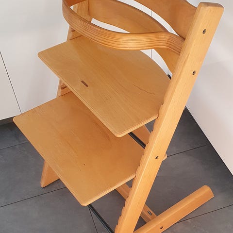STOKKE TRIP TRAP HØJSTOL, incl bøjle og læderstrop.
