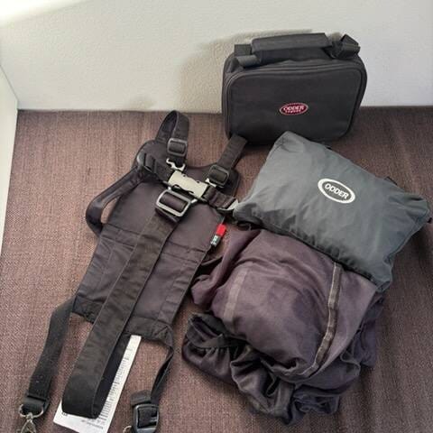 Der medfølger et godt brugt regnslag som stadig fungerer, dog godt brugt indvendigt.
