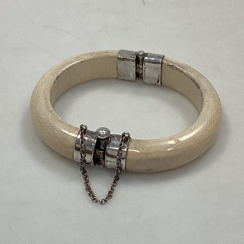 Tungt sterlingølv armbånd med blomster og perle lignende sten.