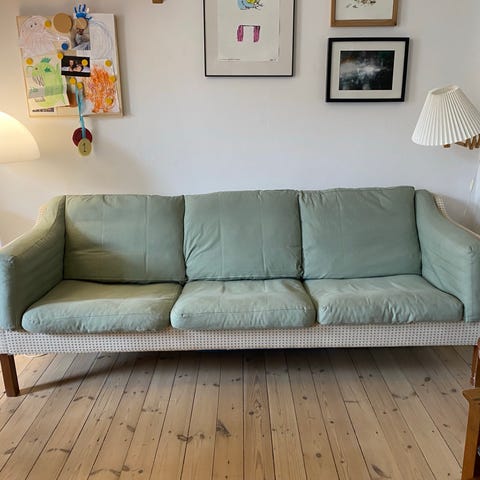 HASTER! Meget smuk og klassisk ældre 3 personers kvalitets sofa fra svenske Fogia. Dunfyld i hynder og puder. Alt betræk kan tages af og renses eller vaskes. Man sidder utrolig godt i den pga den lidt høje ryg.