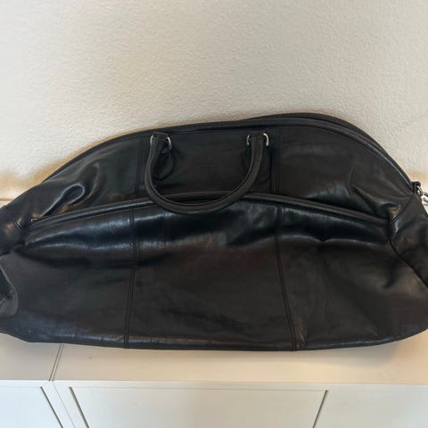 Tiger of Sweden lædertaske i sort. Tasken er fremstillet i glat læder og har både bærehanke og aftagelig, justerbar skulderrem. Velegnet som rejse- eller weekendtaske med rummeligt hovedrum og lynlåslukning. Leveres med stofpose til opbevaring, som ses på billederne.