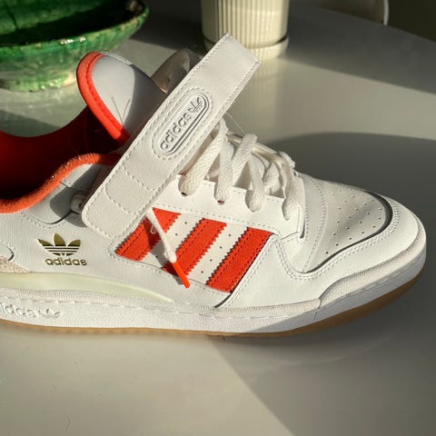 Adidas sneakers i str. 46. Skoene er grønne med hvide striber og lys gummisål. Klassisk snørelukning og lav skaft-højde. Velegnet som hverdagssko eller fritidssko.