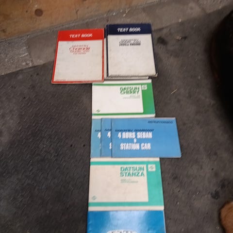 Datsun 100A 120A instruktionsbog for model E10. Bogen indeholder information om bilens instrumentbord, betjeningsknapper og pedaler, samt tekniske illustrationer af motor og motorrum. Der er ledningsdiagrammer og el-skematikker, oversigter over servicepunkter og vedligeholdelse samt generelle brugsanvisninger til bilen. Teksten er på dansk og henvender sig til ejere af Datsun 100A og 120A model E10.