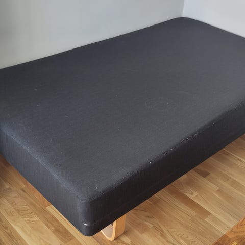 Sengen brugt meget få gange, der er ingen pletter på. Sengen har koniske lyse træben i egetræ.