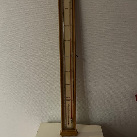 Brugt, men meget fint kviksølvbarometer. Kasse i mørkt træ uden slid.