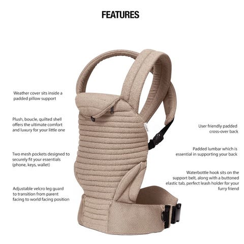 Med polstrede skulderstropper og bred hofterem med spænde. Selen har justerbare remme og panel, så den kan tilpasses barnets størrelse.