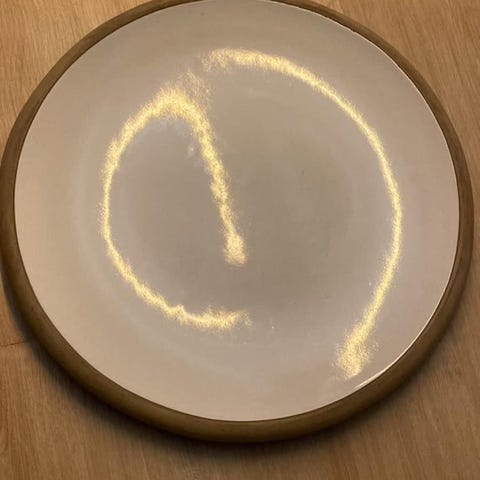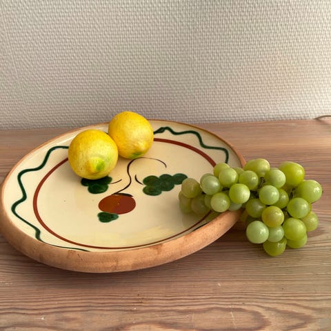 To gamle og fede pandekagerfade - eller nok nærmere tallerkener, da diameteren er ca. 22 cm.