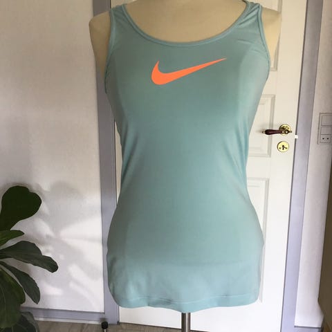 Nike tanktop til kvinder i str. M. Toppen er beige og fremstillet i 61% bomuld og 33% polyester. Klassisk model med brede stropper og rund hals. Egnet til hverdagsbrug eller let træning. Neutral farve, der er nem at kombinere med andet tøj. Farven er mest retvisende på sidste billede.