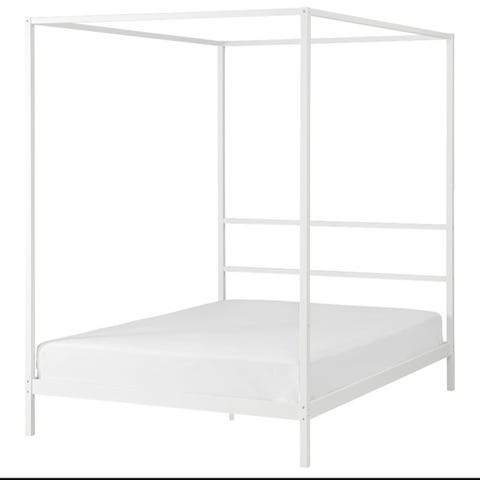 Sengestel Hvid fra Ikea med tilhørende madras.