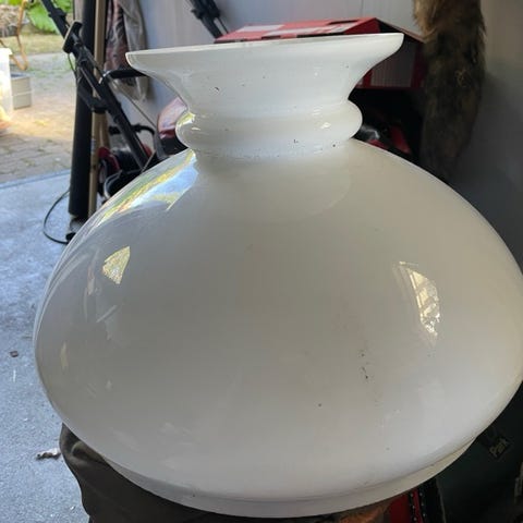 To Holmegaard Michael Bang lampeskærme i hvidt glas med to fatninger sælges.