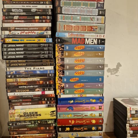 Der er omkring 150 DVD’er.