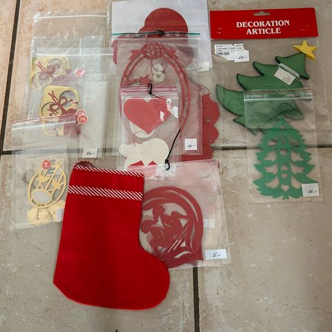 Forskellig julepynt fra bl.a. Golden Christmas og Jette Froölich.
