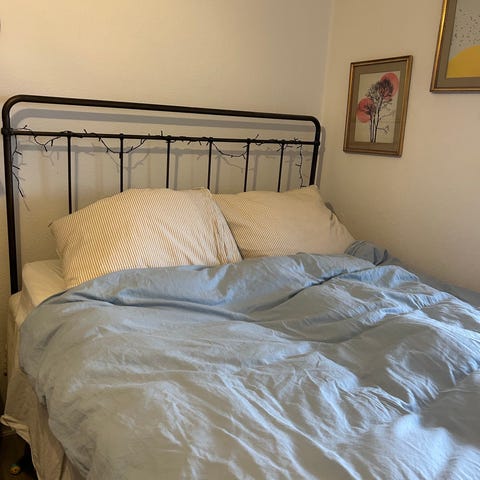 140x200 cm boxmadras seng med stål ben. Inkl topmadras. Velegnet til daglig brug som hovedseng eller gæsteseng. Har haft den i et års tid, og været meget glad for den, men skal have en større.