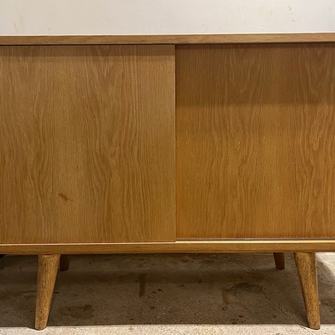 Poul Hundevad skænk i egetræ med låger og nøgler. Skænken består af to dele på sokkel, som nemt kan skiftes hvis man ønsker en skænk på ben i stedet.