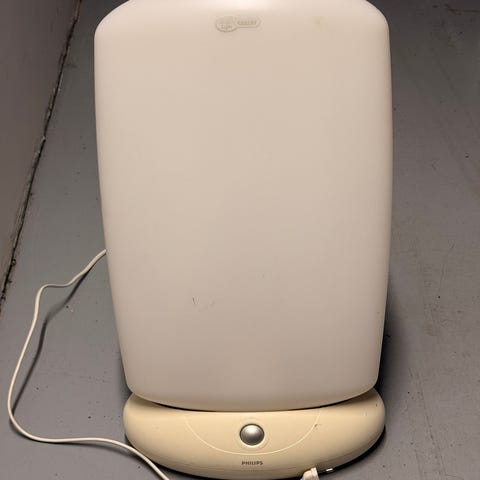 Philips lysterapilampe. Enheden er beregnet til lysbehandling og kan anvendes indendørs, f.eks. på bord eller skrivebord. Lampen har en bred, rektangulær lysflade og er monteret på en stabil fod. Velegnet til brug i hjemmet eller på kontoret, hvor der ønskes kraftigt, jævnt lys til lysbehandling eller som ekstra belysning.