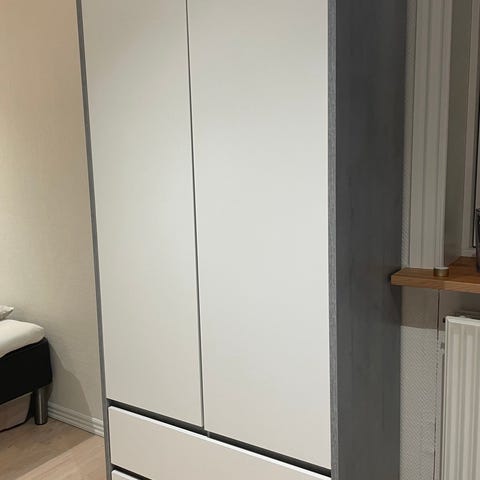 2 stk. Billund-garderobeskabe med skuffer fra Jysk. Mål: B80xH193xD50. Sælges for 750 kr. pr. skab. (Nypris 1499 kr/stk.).