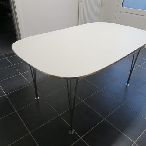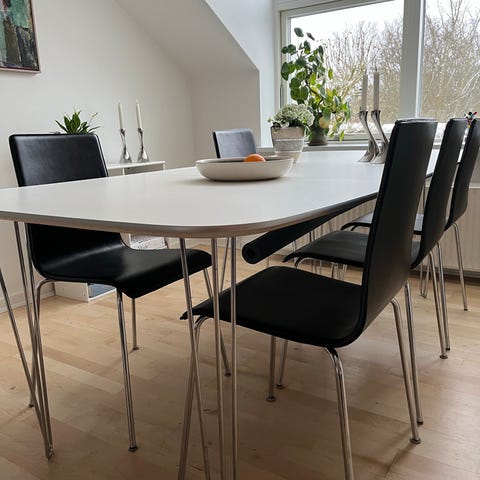 Hvidt spisebord L 120 cm B 80 cm. Bordet kan forlænges til 185 cm. Bordet er med stålben.