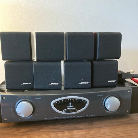Sælger dette meget velspillende forstærker sæt med tilhørende Bose højtalere, spiller perfekt, og er opdateret med seneste software.sættet styres via l app eller med Boses controller, denne kan medfølge ub, da der er en lille streg i display, ellers fungere den som den skal. Kabler til højtalere medfølger . Prisen er fast