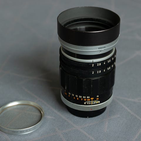 Kommer med frontdæksel. Kan ikke fokuseres med M39 adapter på Sony EF.
