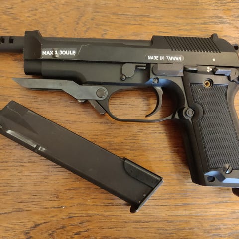 Sælger denne Gas Blow Back Pistol med hårdt blow back.