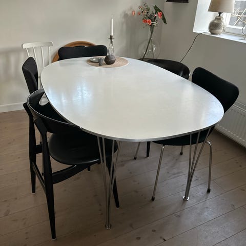 Elegant Fritz Hansen spisebord med forkromet fod.