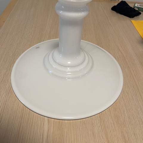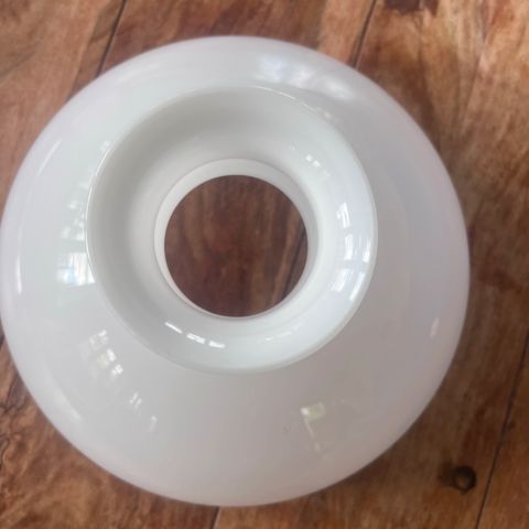 Stor smuk gammel opalglas skærm med flæsekant