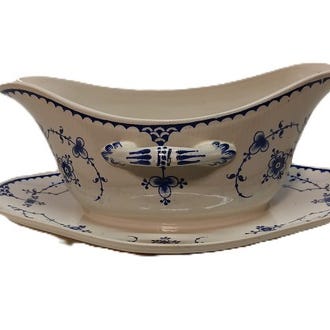 Gustafsberg Alva tallerken blå-hvid porcelæn