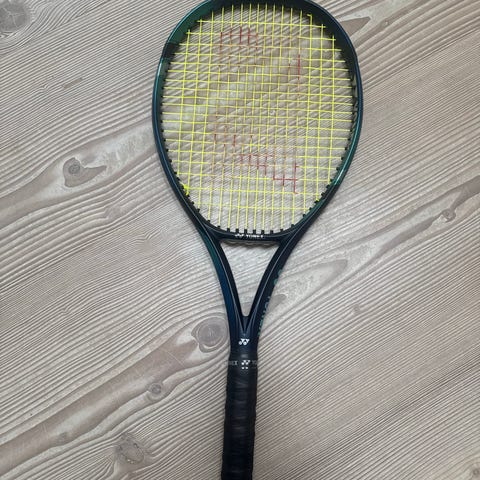 Yonex Ezone tennis ketcher i blå farve. Rammen er i grafitkomposit med VDM (Vibration Dampening Mesh) teknologi. Strenget ketcher med 105” hovedstørrelse og almindelig længde, egnet til spil på alle niveauer.