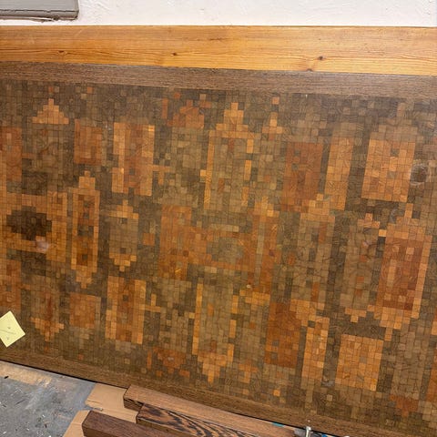 Kvadratisk sofabord med bordplade i sammensatte stenfliser i flere farver og nuancer. Bordet har sort metalstel med fire ben. Velegnet som sofabord eller loungebord i stue eller opholdsrum.