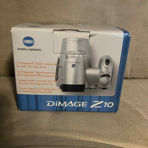 Søgeord: Y2K, vintage kamera, digicam, retro tech, Konica Minolta, DiMAGE, kompaktkamera.