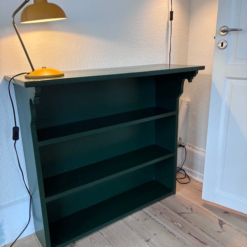 Dejligt gammelt køkkenskab, som vi har brugt til bøger på børneværelset:)