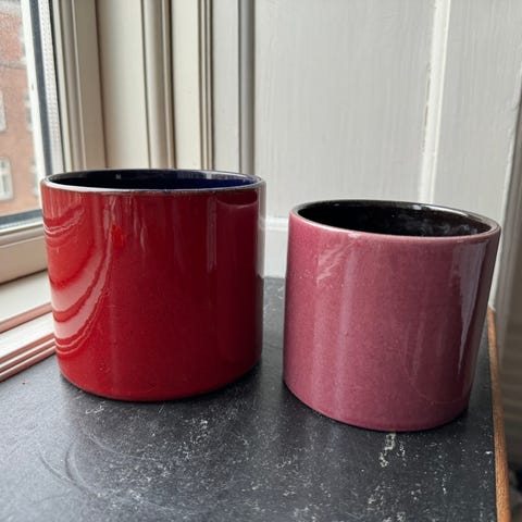 4 stk urtepotter fra West Germany.H 12 cm, Dia 14 cm.Uden skår eller revner, gå til varen, for flere billeder. Prisen er stykket.(A5).