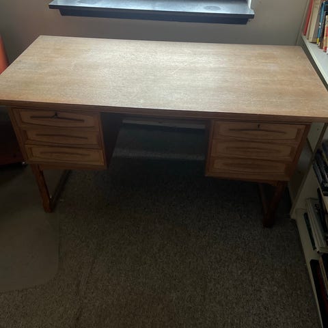 Sælger dette pæne skrivebord, i okay stand. Det er brugt, og et lidt mere ældre skrivebord, men holder godt.